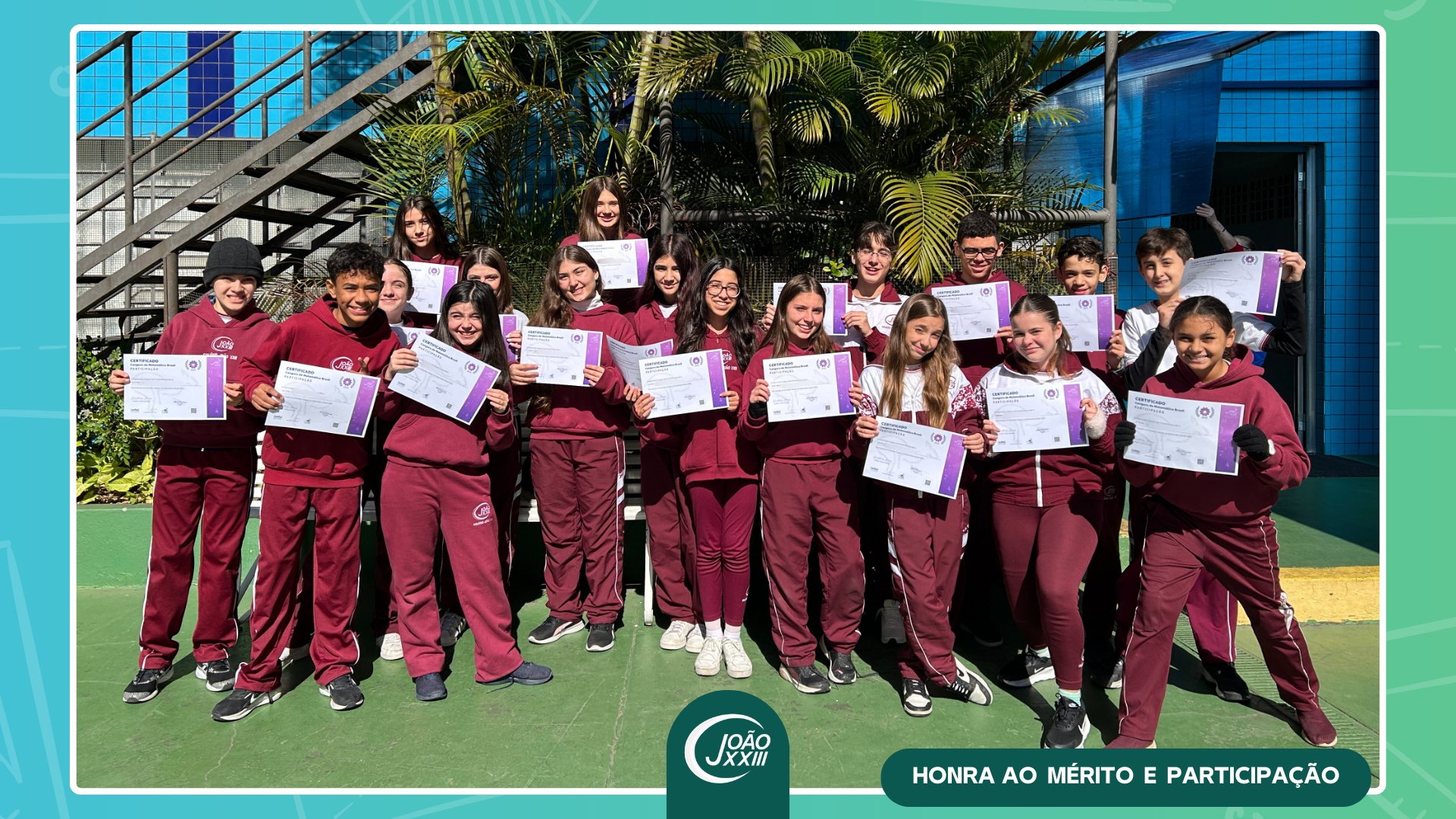 Vivemos um momento de grande alegria com a entrega dos certificados de prata, bronze, honra ao mérito e participação, reconhecendo o esforço e a dedicação dos nossos alunos em uma das maiores competições de matemática do mundo.